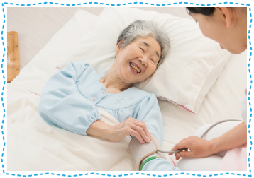 訪問看護が必要であると認められた方に対し、医師の指示書に基づき、看護師・理学療法士・作業療法士などがご自宅を訪問しサービスをご提供しています。